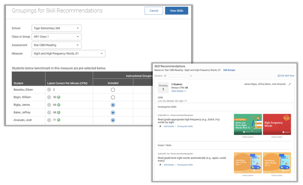 In addition to adding Sight & High-Frequency Words and Encoding to the Data Insights tiles, you can further connect assessment and instruction by accessing instructional resources tied to the skills students need to develop, as indicated by these measures. The Star Record Book allows educators to easily view student performance, set goals, manage groups, access resources, and measure growth—all in one place.